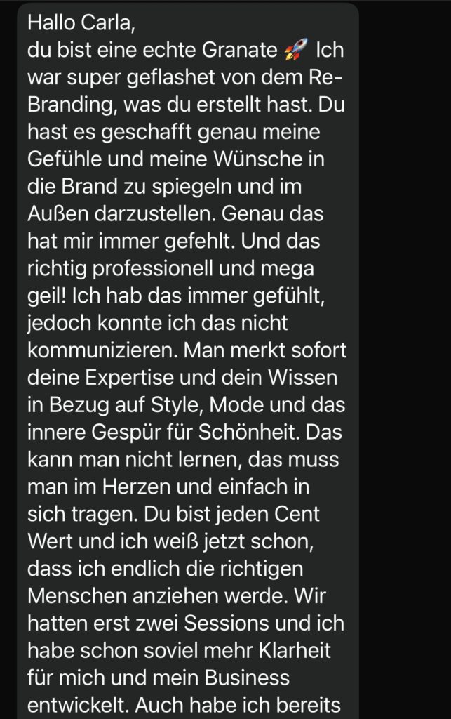 Du wirst als High-End-Expertin wahrgenommen, ziehst investitionsbereite Kundinnen an und verdienst endlich, was du wert bist.