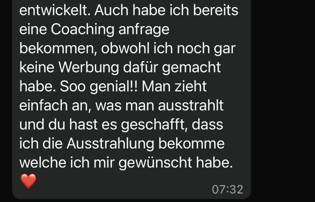 In diesem intensiven, intimen Prozess löst du innere Limitierungen, stärkst deine (Self-) Leadership-Skills, deinen Selbstwert und wirst zur mutigsten, selbstsichersten und erfolgreichsten Version deiner selbst.